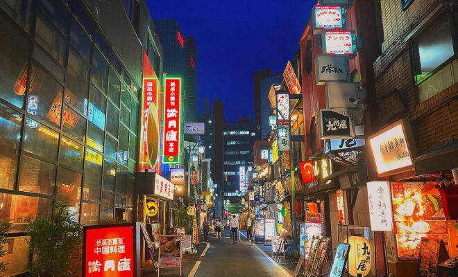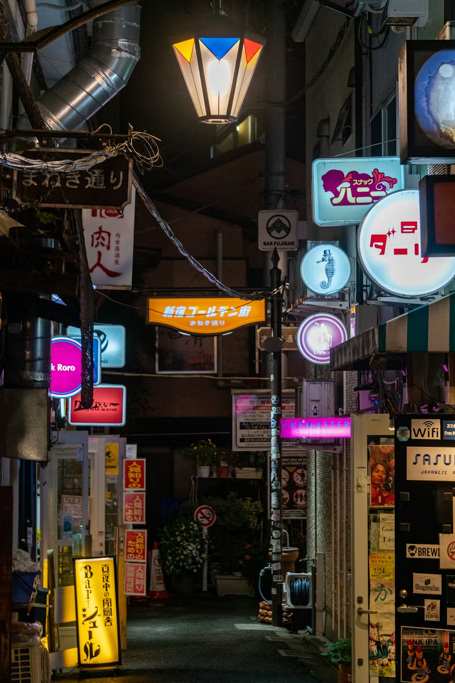 Kabukicho Red Light District — nach 23:00. Host/hostess clubs, Themenbars. Don Quijote 24h.