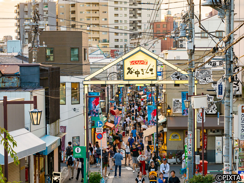 Yanesen (Yanaka–Nezu–Sendagi) — Katzenstraße, alte Häuser, traditionelle Läden