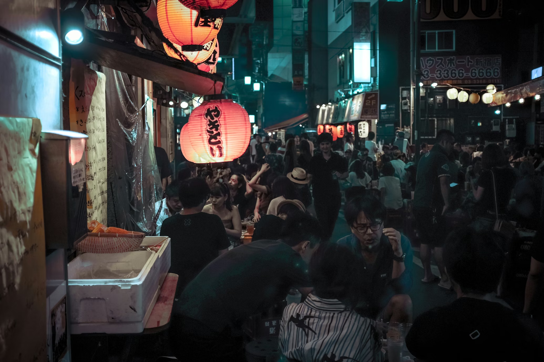 Yurakucho Gado-shita (有楽町ガード下) — Izakayas unter den Eisenbahnviadukten Shimbashi → Yurakucho. Enge Theken, rote Laternen, Züge von oben. Lässt sich mit Snack Bar Karaoke in Shimbashi kombinieren — ein Abend.